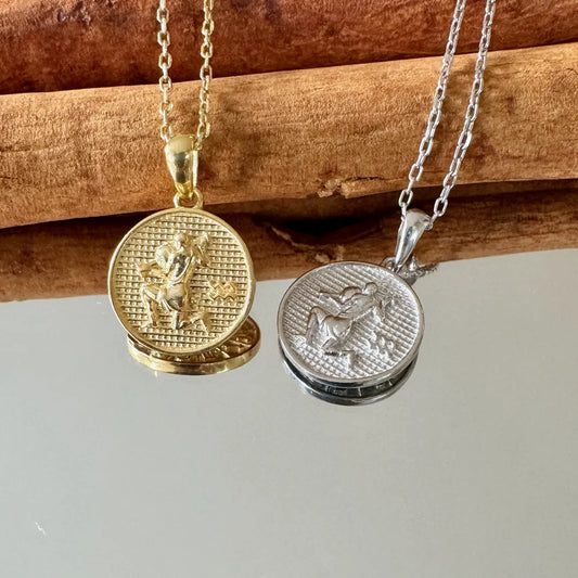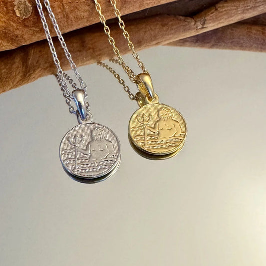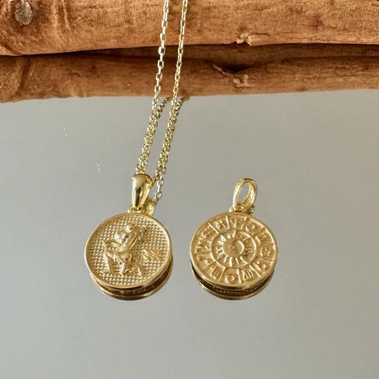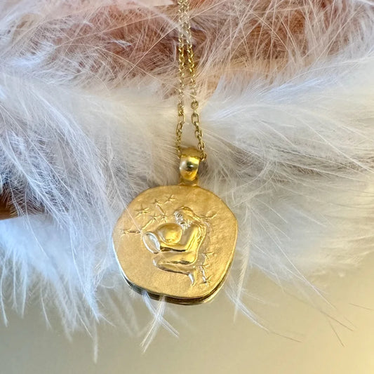 Ancient Zodiac Aquarius Necklace - Solid Gold Zodiac Charm