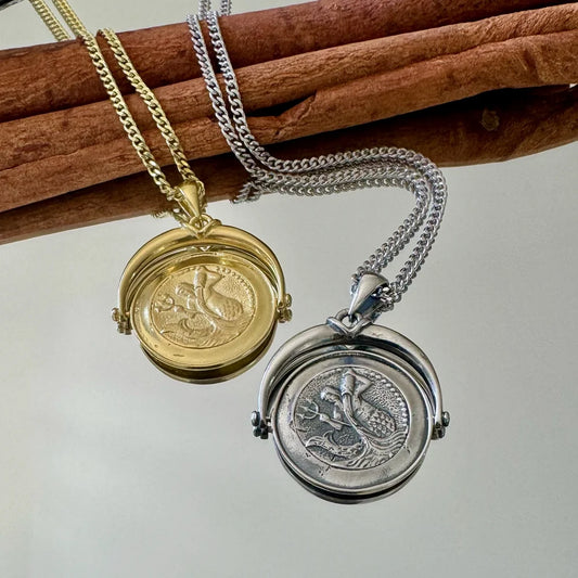 Cosmic Spin Zodiac Aquarius Necklace - Silver Zodiac Pendant