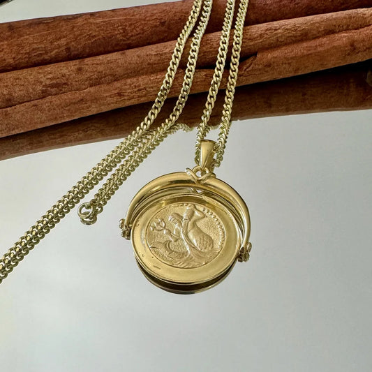 Cosmic Spin Zodiac Scorpio Necklace - Solid Gold Zodiac Pendant