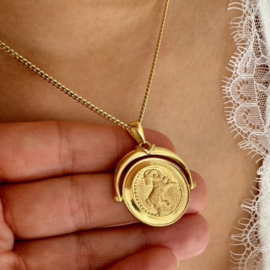 Cosmic Spin Zodiac Aries Necklace - Solid Gold Zodiac Pendant