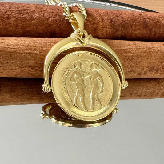 Cosmic Spin Zodiac Gemini Necklace - Solid Gold Zodiac Pendant
