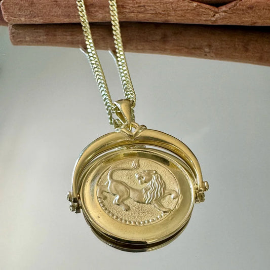 Cosmic Spin Zodiac Leo Necklace - Solid Gold Zodiac Pendant