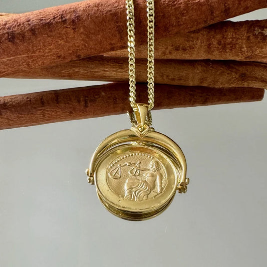 Cosmic Spin Zodiac Libra Necklace - Solid Gold Zodiac Pendant