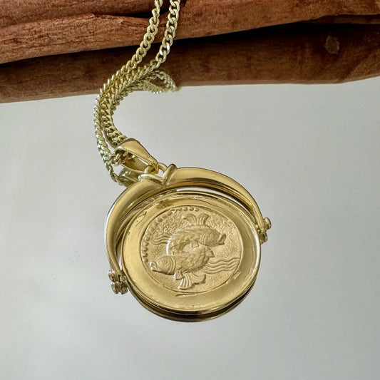 Cosmic Spin Zodiac Pisces Necklace - Solid Gold Zodiac Pendant
