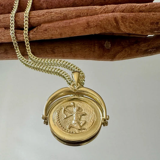 Cosmic Spin Zodiac Sagittarius Necklace - Solid Gold Zodiac Pendant