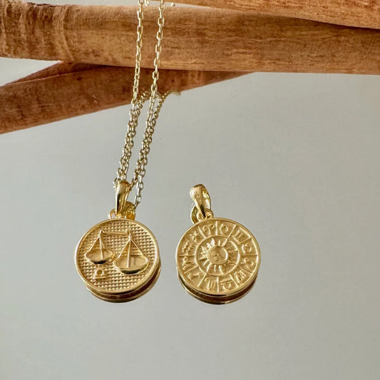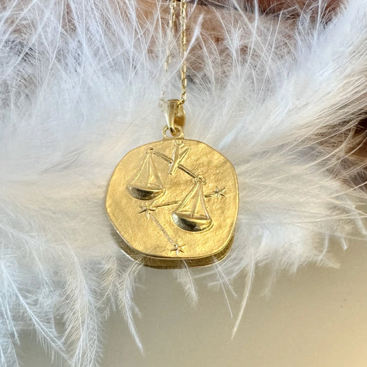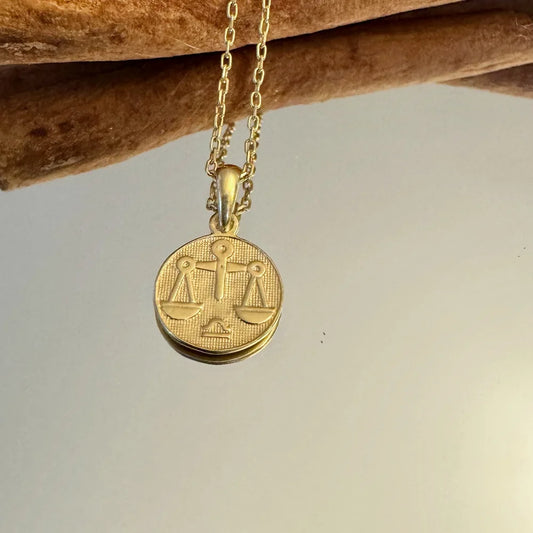 Ancient Zodiac Libra Necklace - Solid Gold Zodiac Charm