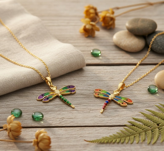 Enchanted Dragonfly Elegance Pendant - Solid Gold