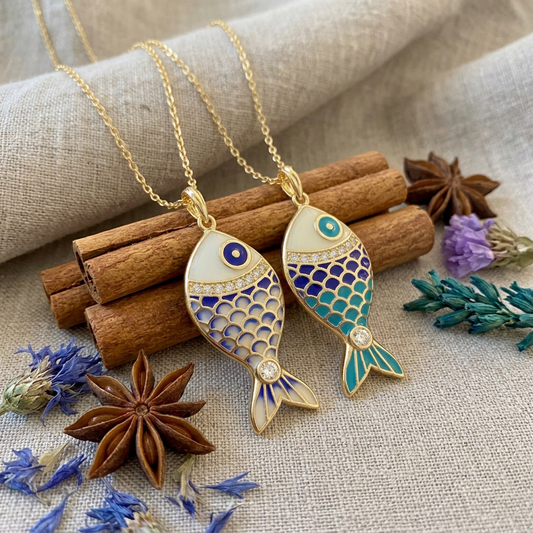 Nautical Elegance: Aqua Fish Pendants - Solid Gold