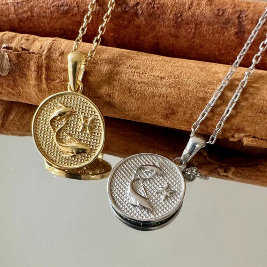 Ancient Zodiac Pisces Necklace - Solid Gold Zodiac Charm
