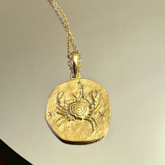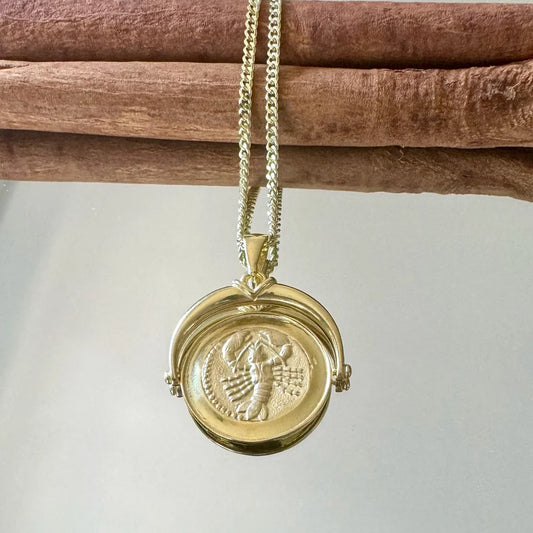 Ancient Zodiac Cancer Necklace - Solid Gold Zodiac Charm